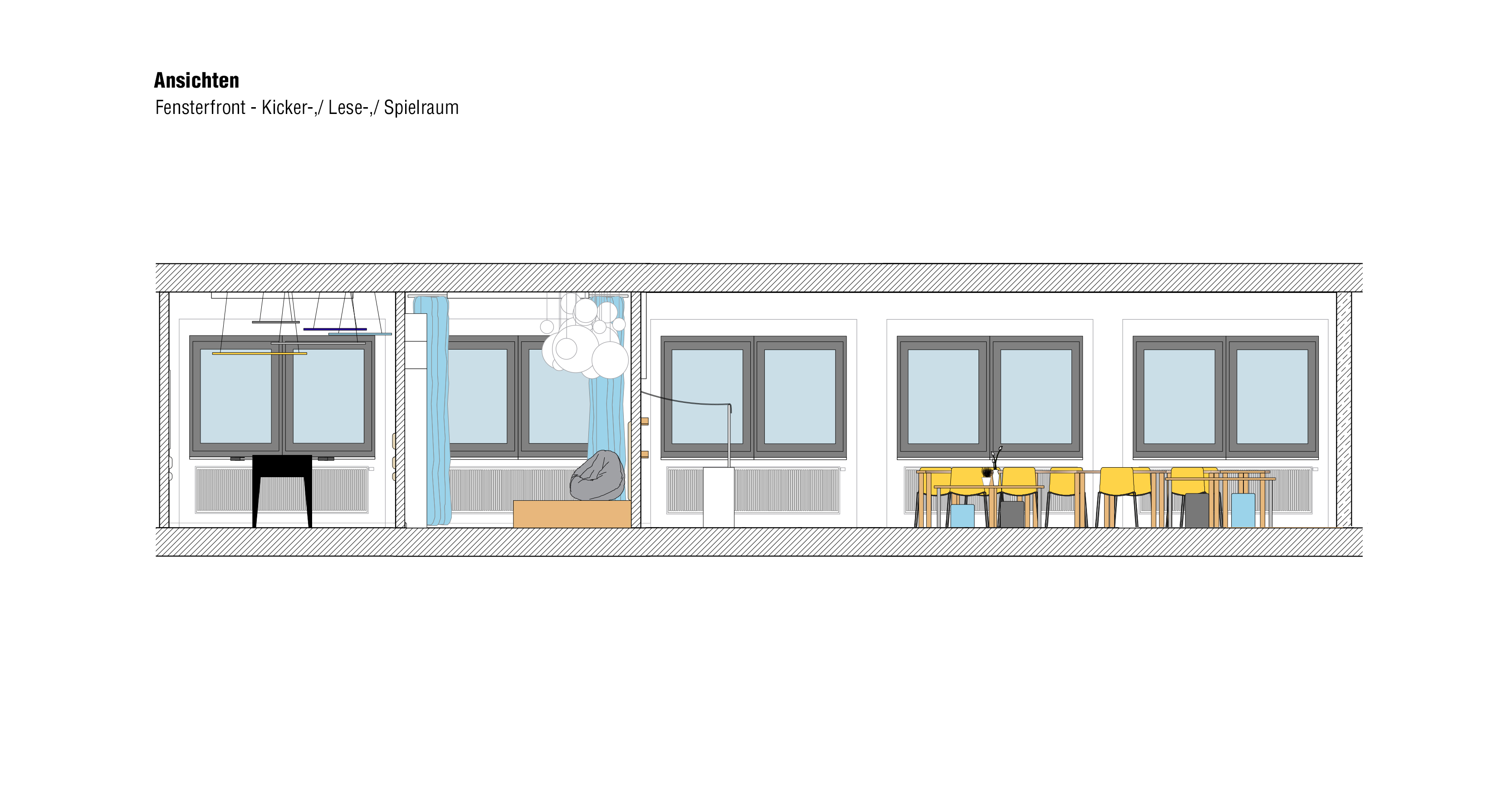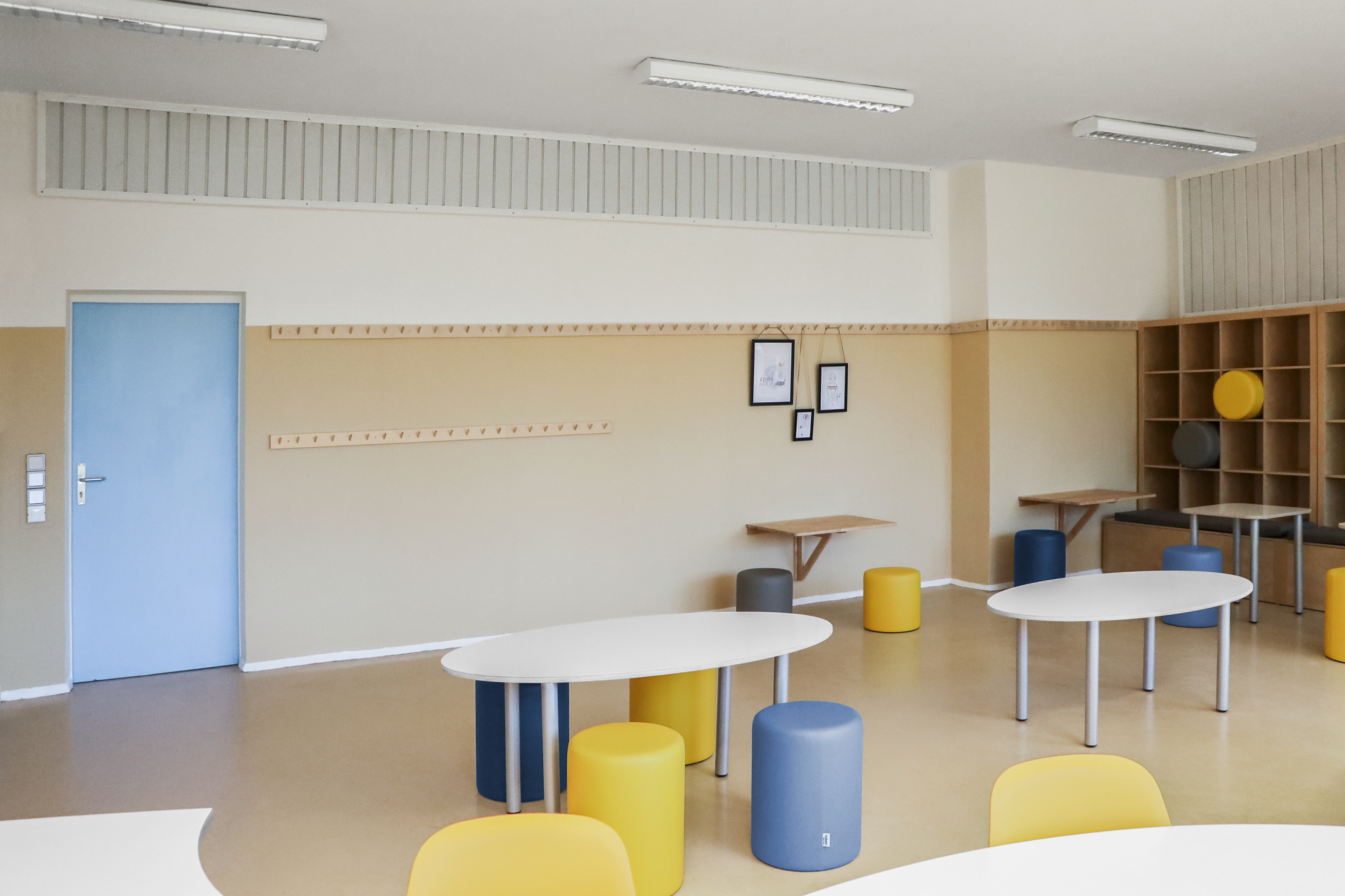 Im Rahmen des Markenaufbaus der Dreieins gGmbH wurden am Standort Kaulsdorf die Räume des Hortes neu gestaltet. Unter Einbezug bestehender Möbel entstanden Räume, die den CI-Farben und dem Gesamtkonzept folgen. Ziel war es eine angenehme, luftig helle Atmosphäre zu schaffen, die die Sinne an- aber nicht überregt.