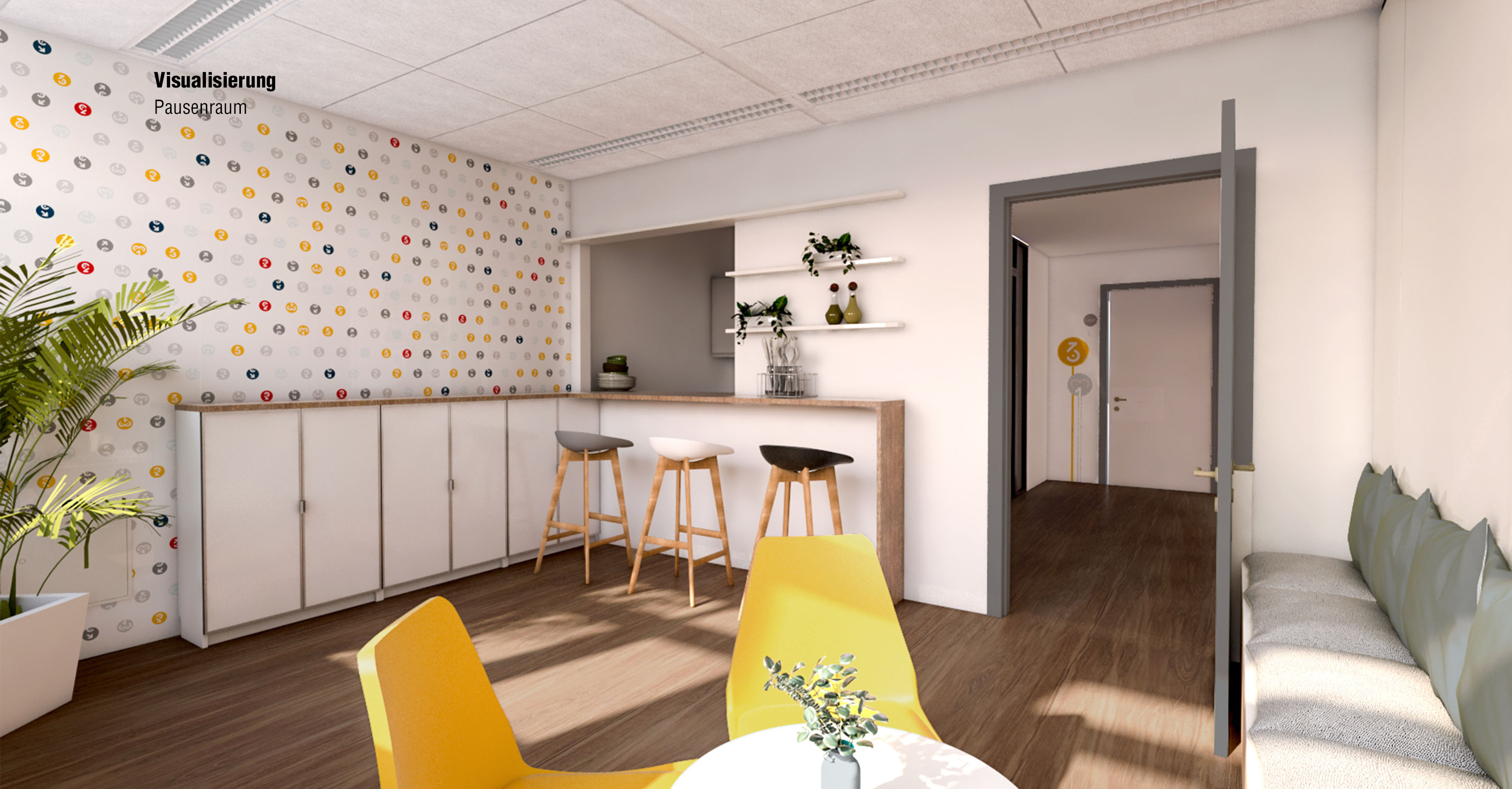 mit dem angrenzenden Pausenraum zu bringen. Aus baulichen und platzbedingten Gründen, war eine komplette Öffnung des