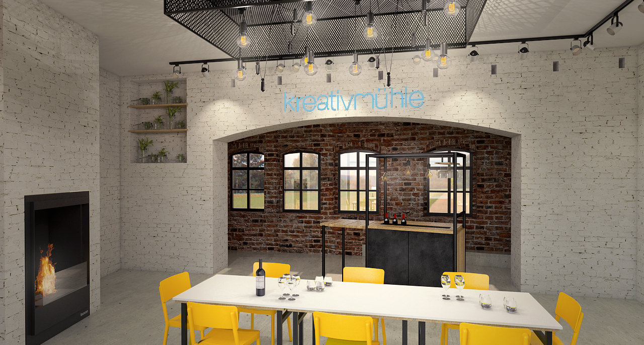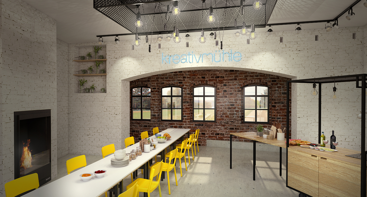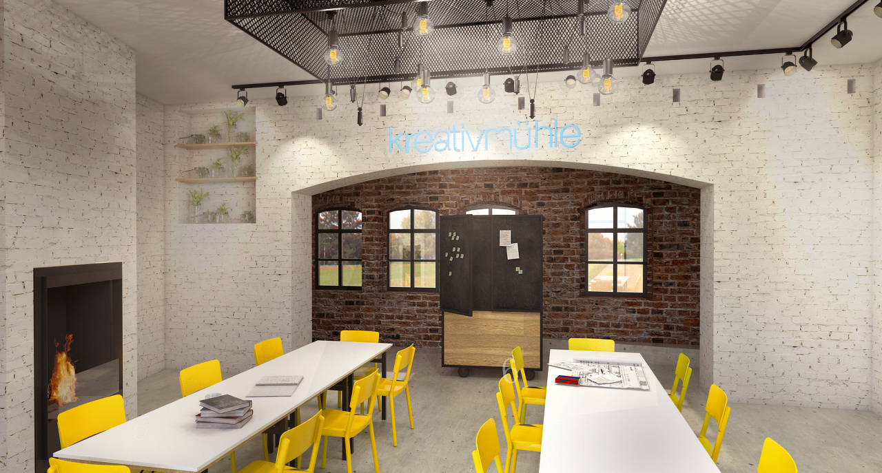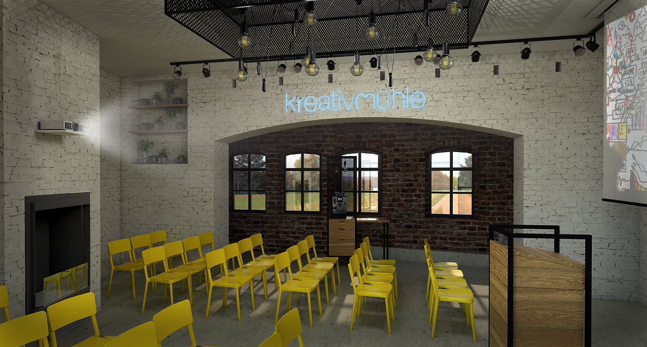 Grob gegliedert gibt es vier Felder in denen sich die Veranstaltungen im Kreativzentrum bewegen werden: Bildung, Kreativangebote, Café & Lounge, sowie Märkte. Ziel war es für diese vielfältige Nutzung ein multifunktionales Raumkonzept zu erarbeiten und dabei den Altbestand zu würdigen. Das Konzept sieht vor, die vorhandene Substanz minimal aufzuwerten um den alten Charme beizubehalten, dazu werden die Wände im mit der Zeit gewachsenen, unregelmäßigen Mauerwerk belassen und lediglich ausgebessert.