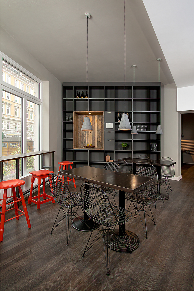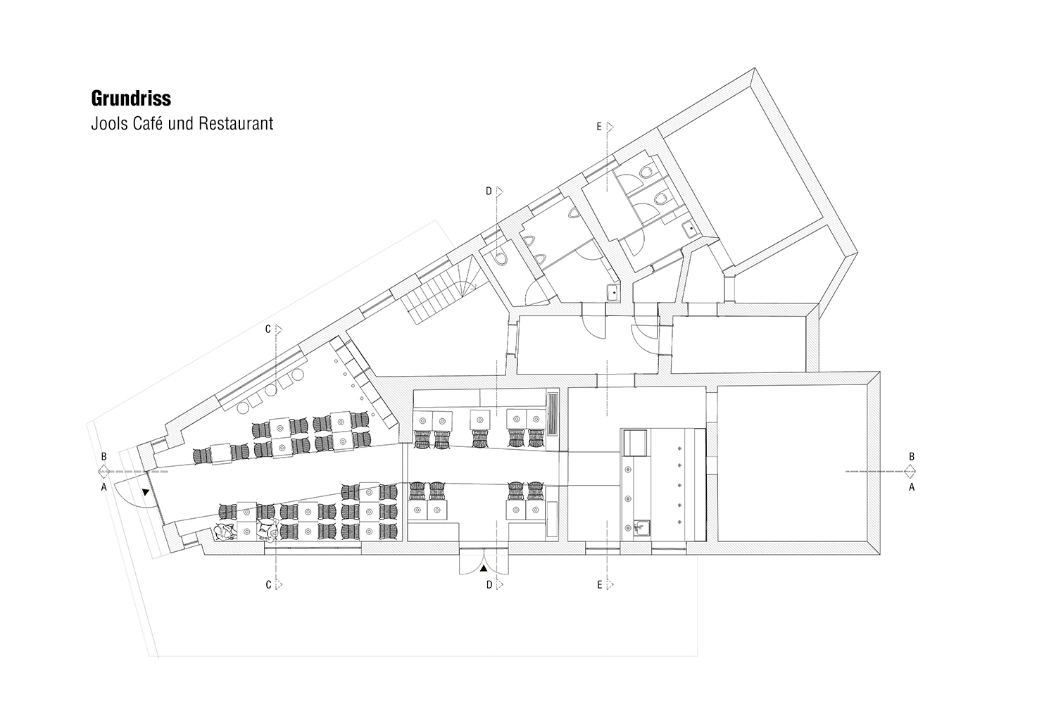Das Café und Restaurant Jools liegt in einem historischen Eckhaus in Hamburg Ottensen und besteht aus drei hintereinander liegenden Räumen.